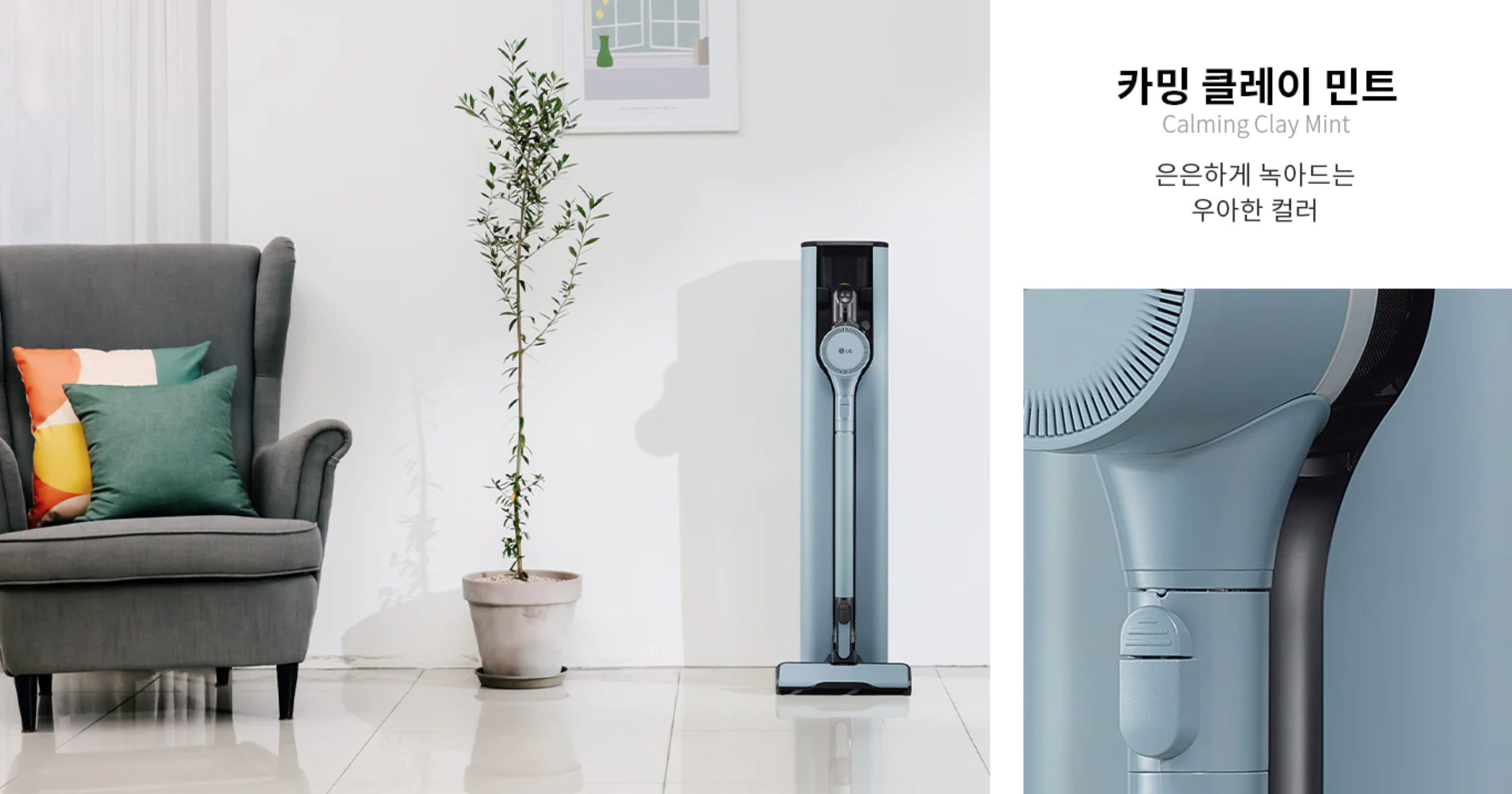 다음은 au9882 모델입니다. 9882 색상은 베이지, 그린 그리고 민트 색상이 나왔습니다. 핑크 대신 카밍 클레이 민트 색상이 있습니다. 이런 점은 원하는 색상에 따라 소비자가 원하는 무선청소기를 구매할 수 있는 요소가 될 수도 있겠습니다.