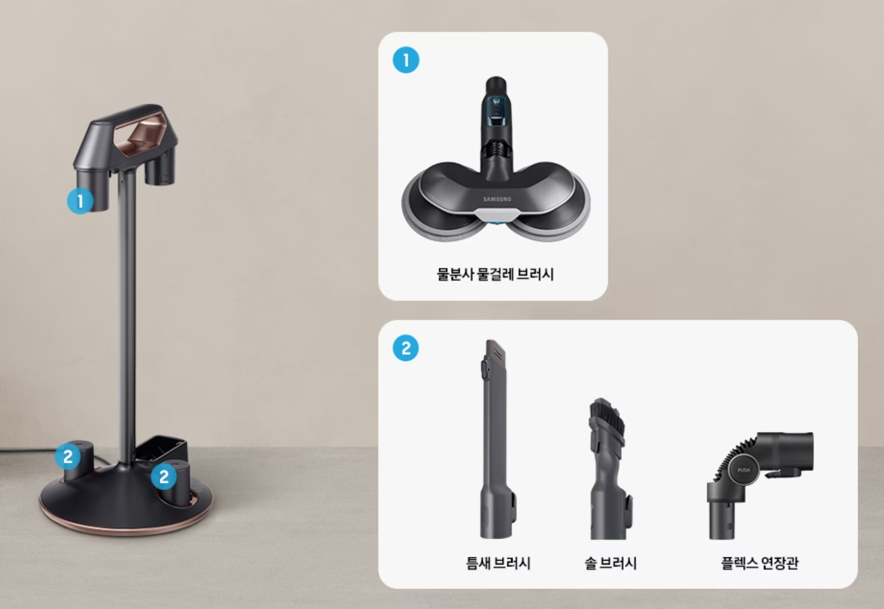 위 모델은 물걸레,침구,팻브러시 있음/ 배터리 총2개 , 플렉스 연장관 있음.