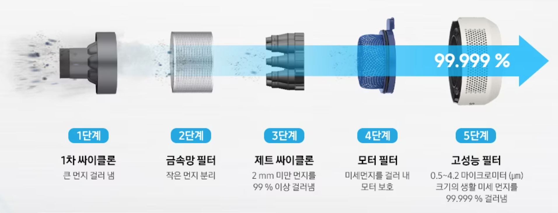5단계 필터 시스템으로 생활미세먼지 99% 이상을 걸러낸다고 합니다.